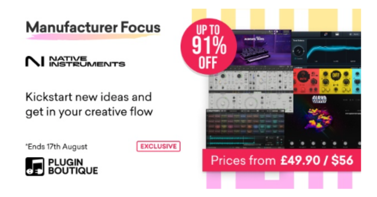Native Instruments—the groundbreaking innovators behind Komplete, Reaktor, Massive, Kontakt, and more—have launched an exclusive Manufacturer Focus Sale at Plugin Boutique. From August 1 to August 17, 2025, snag massive discounts—up to 91% off—on top-tier plugins, bundles, and tools. This sale includes heavy-hitters like the Reaktor Synthesizer Bundle, Komplete Select, Play Series bundles, Kontakt 8, and more.